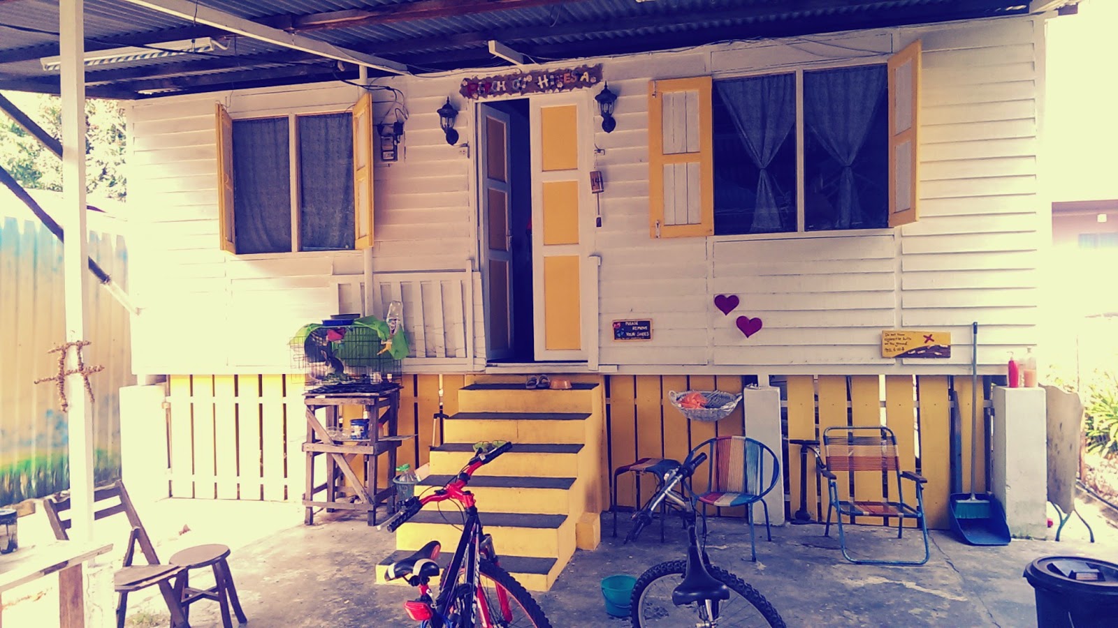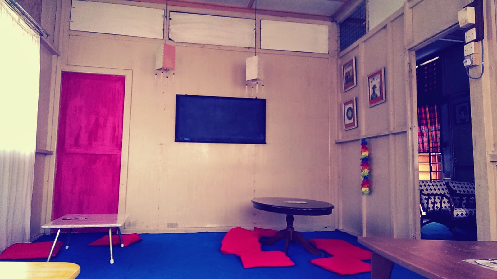 這間屋子在一年半前還是一個長滿野草殘舊的老厝,經過這几位擁抱夢想的青年,決定把它變成麻坡的藝術迴廊.除了前面經營咖啡及藝術之外,後面還有一間"高腳屋"他們也重新改為民宿,多方面經營.