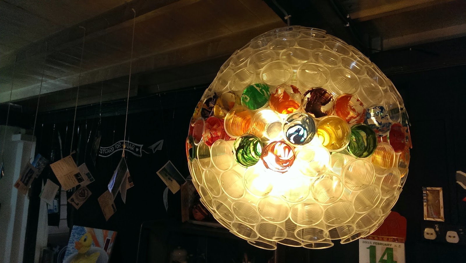 | 很環保的用膠杯來組合而成的燈式 |