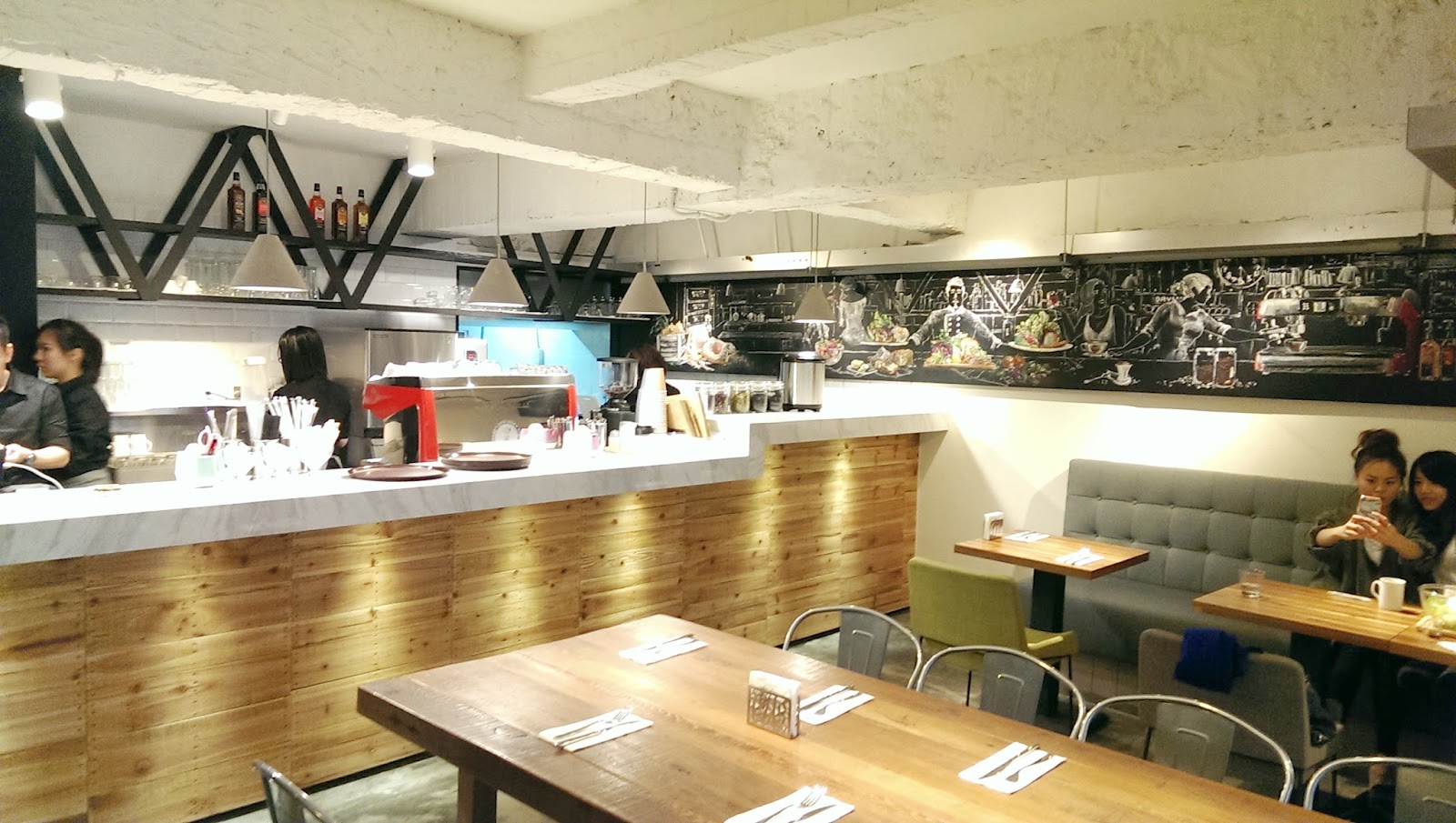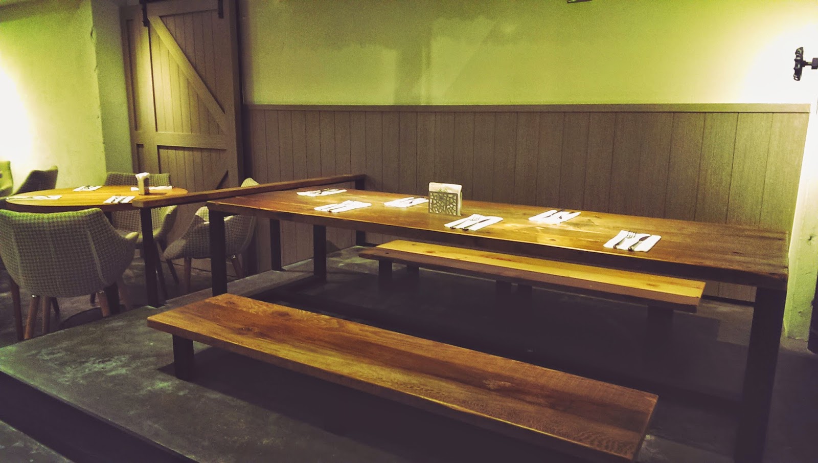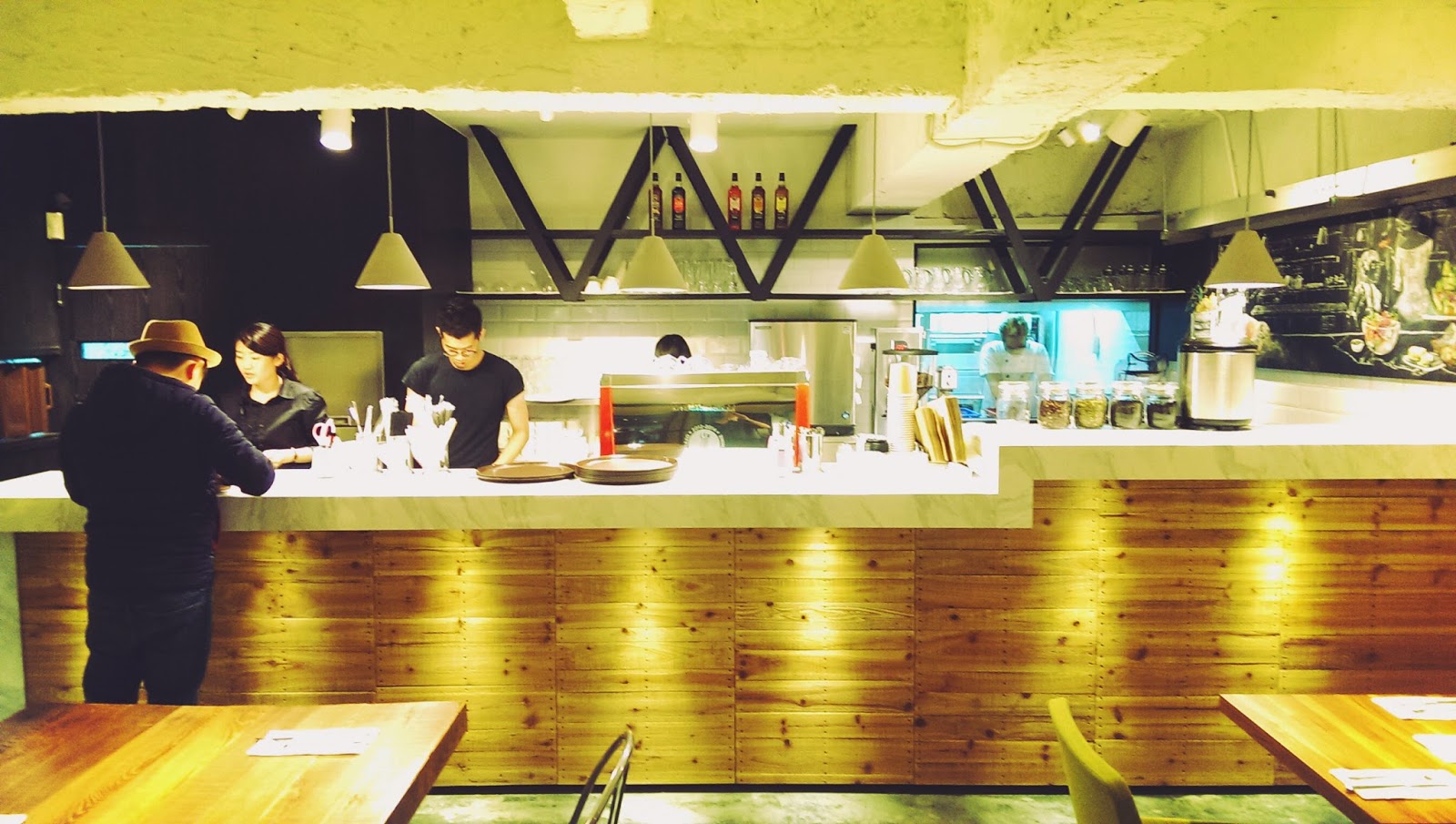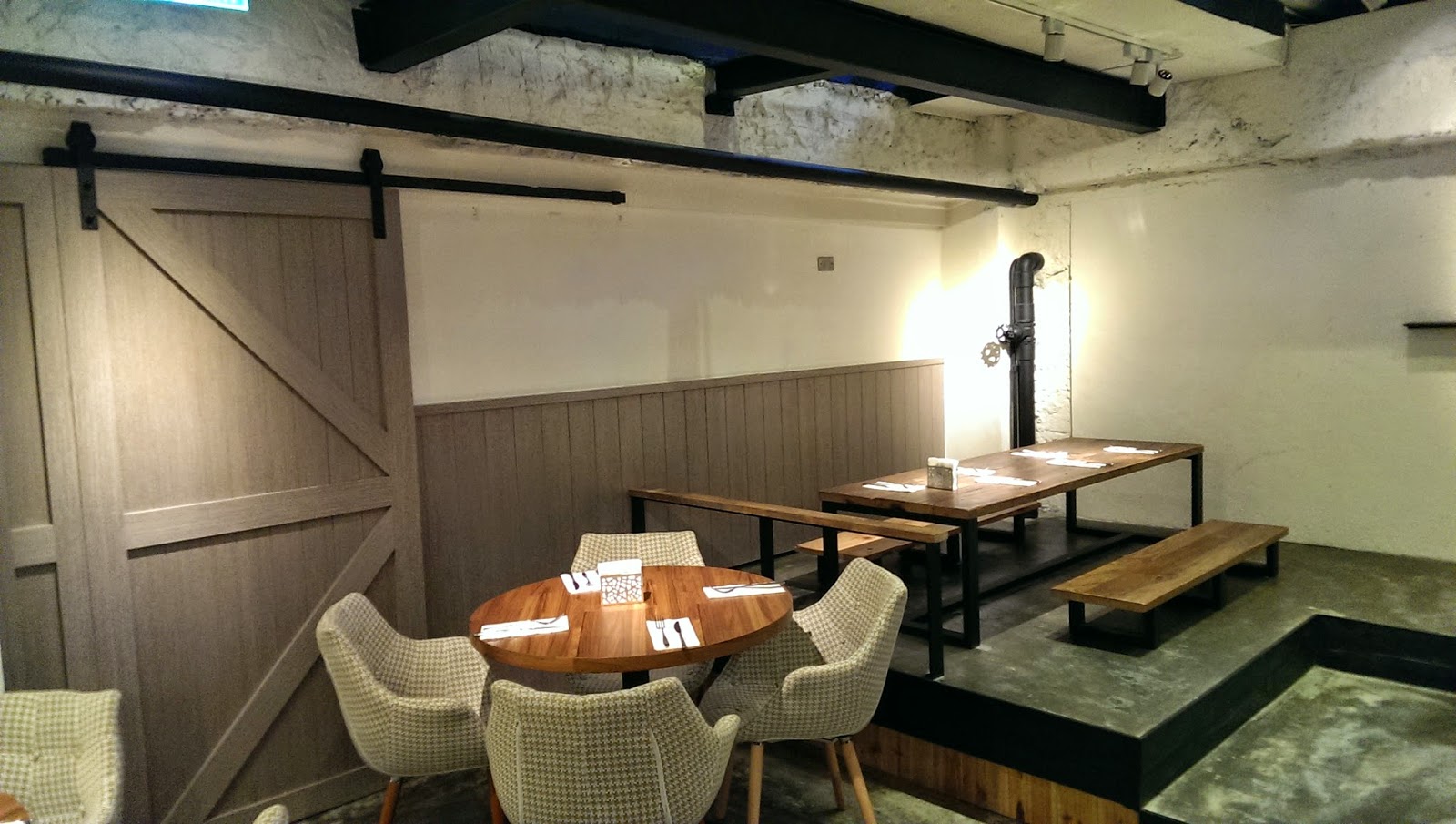 ▲ 此餐廳的裝潢特色是用黑鐵,裸露水泥白漆與實木搭配出的工業風空間,不同材質的相互結合,軟化了冷冽的工業風,營造出[雅]的氣氛。