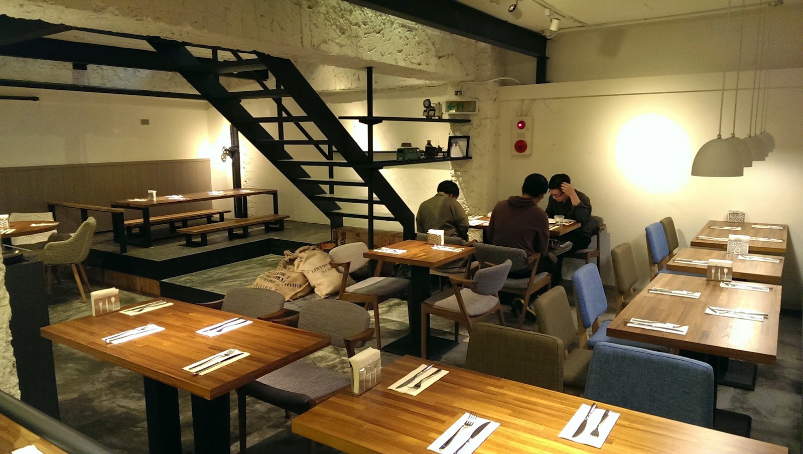 裡面的天花板及牆面都用裸露的水泥模板,粗獷不加修飾的外形,是工業風重要元素。
